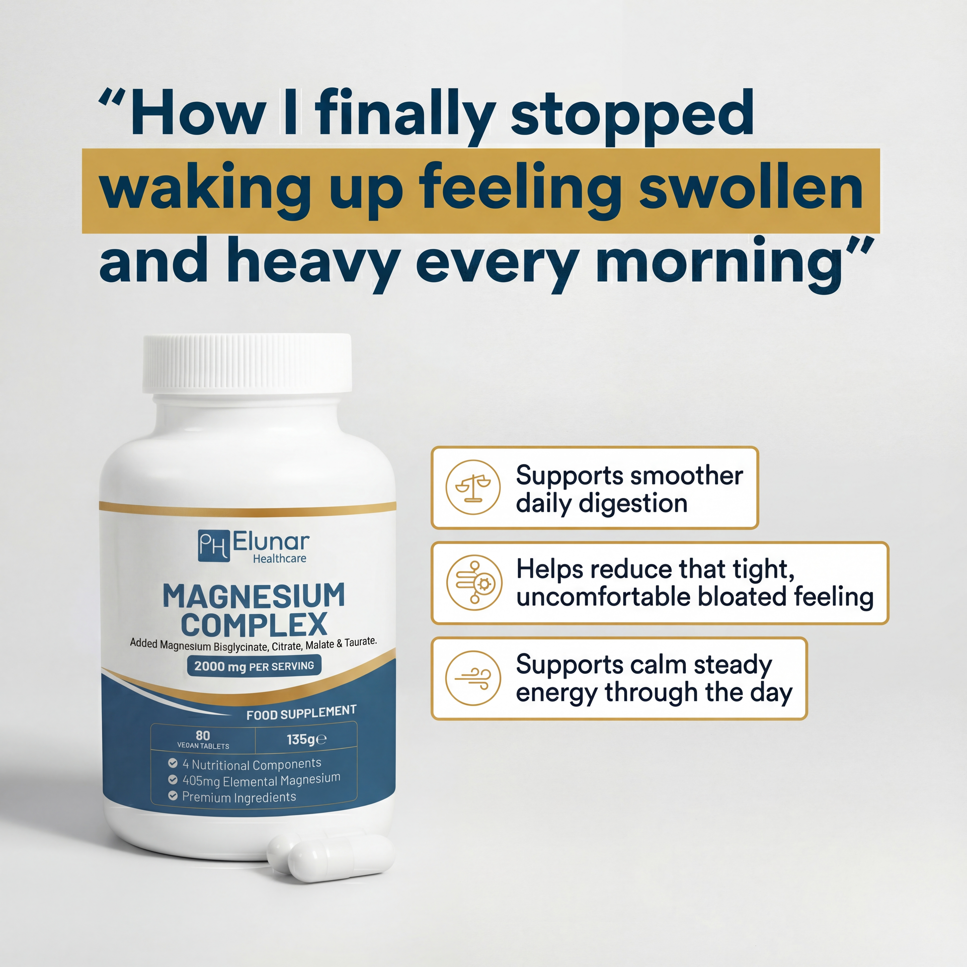Many magnesium pills are built around a label and a milligram number. Mag 8 is built around how a bloated woman actually feels through the day.